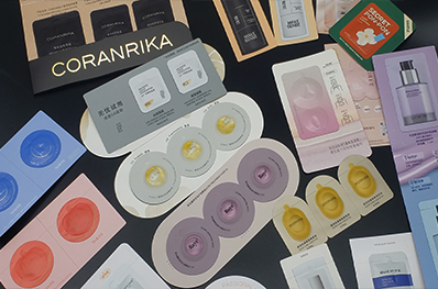 ???????產品范圍:粉底、口紅等彩妝類產品試色卡,水、乳、霜等護膚品類產品試用裝,精油、香水以及洗護用品類產品試用裝和PP安瓶,產品表現形式為:泡罩、紙卡、復合膜等。